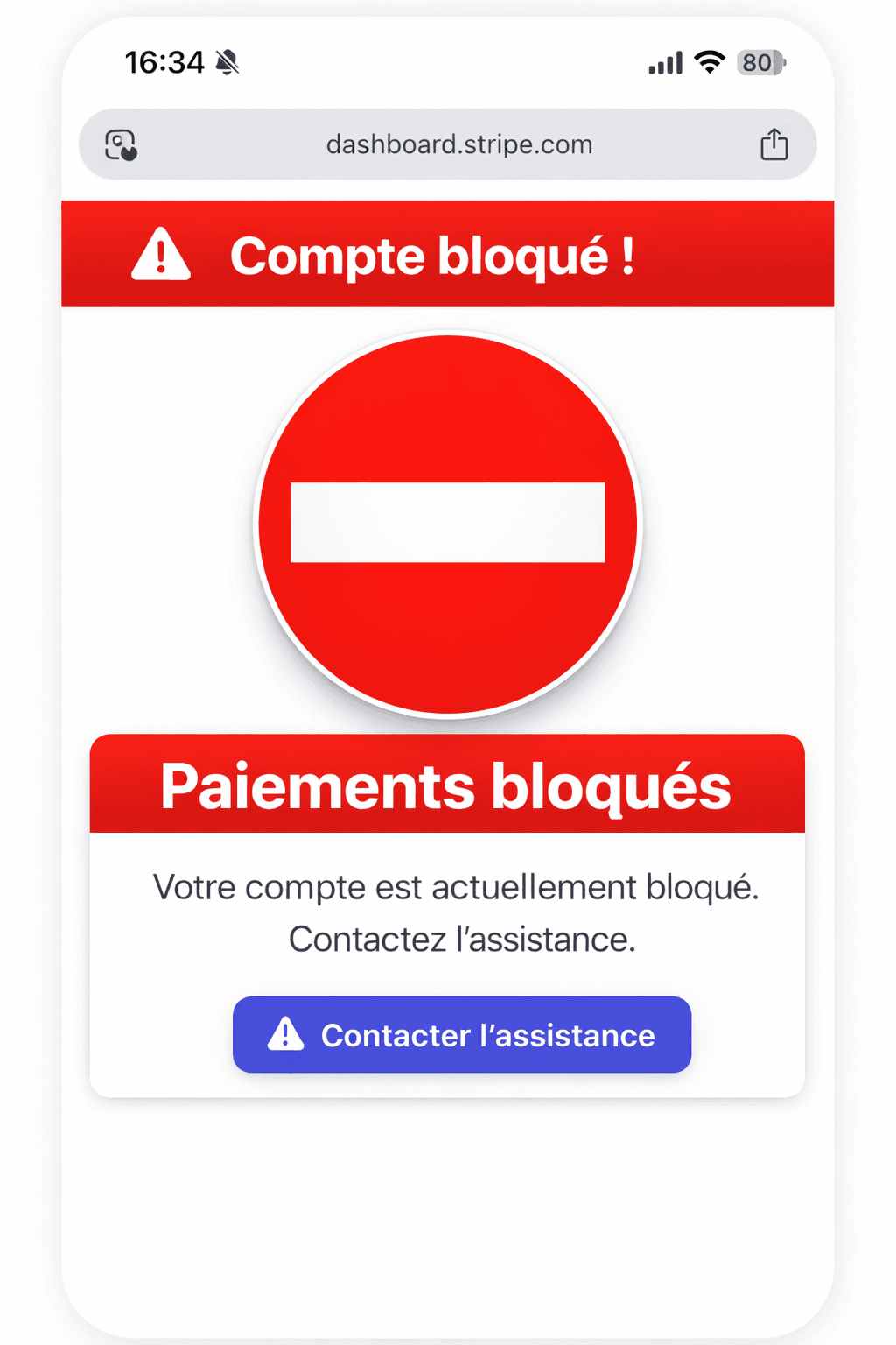 Accompagnement professionnel pour résoudre les suspensions Stripe prolongées (+120 jours).